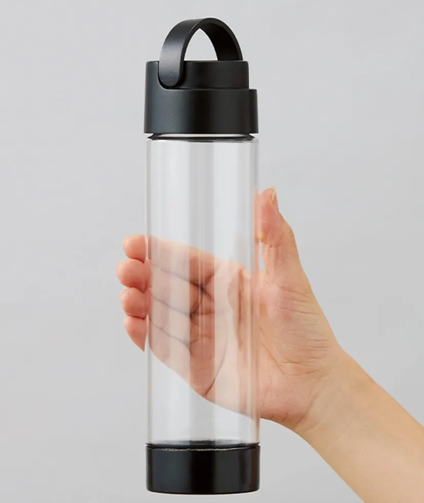 移動の際に簡単に持ち歩けるハンドル付きのクリアボトルです。 ハンドル部分は触り心地の優しいマットな樹脂製なので、指位一本で持っても痛くなりにくく、ハンドルを使用しないときはキャップの側面に収納することができます。軽量なボトルなので、ちょっとしたお出かけの際や、ジムやランニングなどアクティブなシーンにもおすすめです。飲み口に氷止めが付いているので、ボトルの中に氷を入れて利用するときも飲むときに氷が外に出ない便利な仕様となっています。底面には滑りにくいシリコンが付いております。MOTTERUのボトルシリーズは、使い捨て飲料容器ごみを無くしていくというSDGsの地球環境課題にスポットをあて、また大きなトレンドとしてフリーアドレスなどの大きな労働環境変化と近年の節約志向の高まりに伴い“自前の飲み物や法人専用のコーヒーマシン”などを使用する人が急増している中、日常生活の中だじゃなく、レジャーやオフィスなど様々なシーンで繰り返し愛用できるドリンクウェアとなっております。蓋面・側面に印刷可能です。