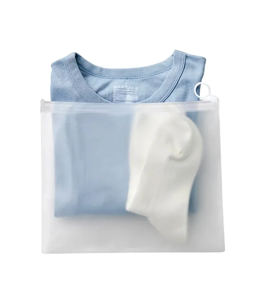 EVA素材のクリアポーチが登場しました!半透明なのでポーチの中身を確認することができます。Tシャツやフェイスタオルなどが収納できる大きめなサイズ感です。同型商品でS、Mのサイズ展開がございます。引き手部分がリングになっていますので、ショップや物販会場などで吊り下げ陳列が可能です。名入れ方法も単色印刷からフルカラー印刷まで対応しておりますので、会社のロゴやキャラクターなどを入れればよりオリジナル性の高いグッズをおつくり頂けます。アパレルブランドの包装やオープンキャンパスのノベルティ、旅行の荷造りなど様々な用途で使用できるポーチとなっております。