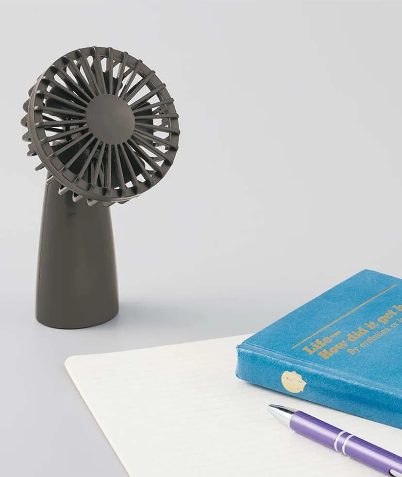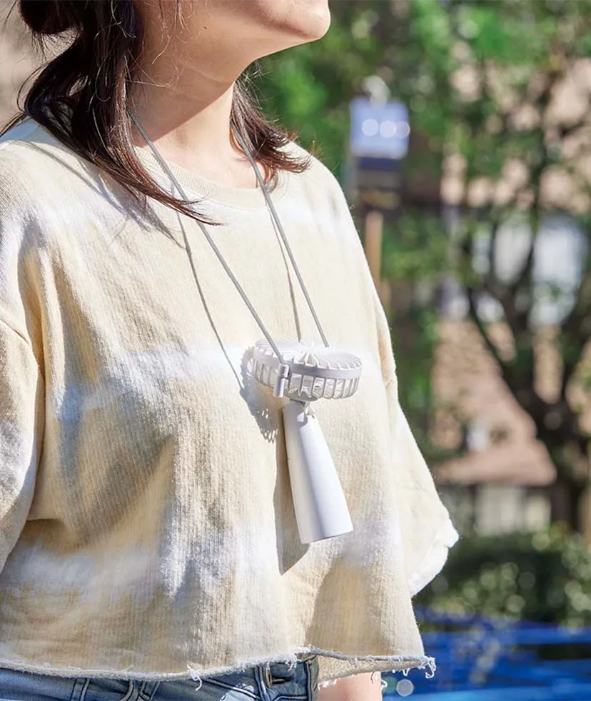 使用シーンでスタンドファン、首掛けファン、ハンディファンと3WAYに使い分けのできる乾電池タイプのファン。ヘッド部分は上下に約90度の調節が可能。卓上でお使いいただく場合も好みの角度でお使いいただけます。付属のネックストラップは安全パーツ付きで、合わせてお使いいただければ首掛けファンとしてもおすすめ。夏に向けたキャンペーンの販促品や音楽フェスなどの物販品としてもおすすめです。