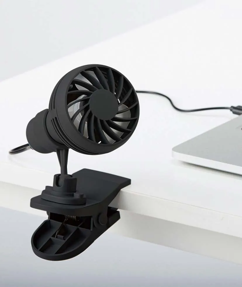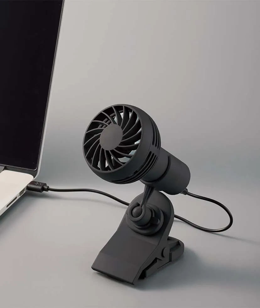 使用シーンでスタンドファン、クリップファン、ハンズフリーファンに使い分けできる多機能ファンです。風量は弱・中・強の3段階に調節でき、使用シーンによって使い分けすることができます。誤作動防止としてスイッチを2度押しで起動する仕様です。クリップの挟む部分には滑り止めがついており、クリップで対象物に挟んだ時に滑り止めになり、外した時に対象物に傷が付かないようにしています。本体をセットすることで好きな角度に調節することができます。ファン本体はコンパクトなサイズで持ち運びしやすい形状となっています。