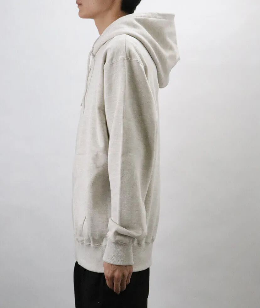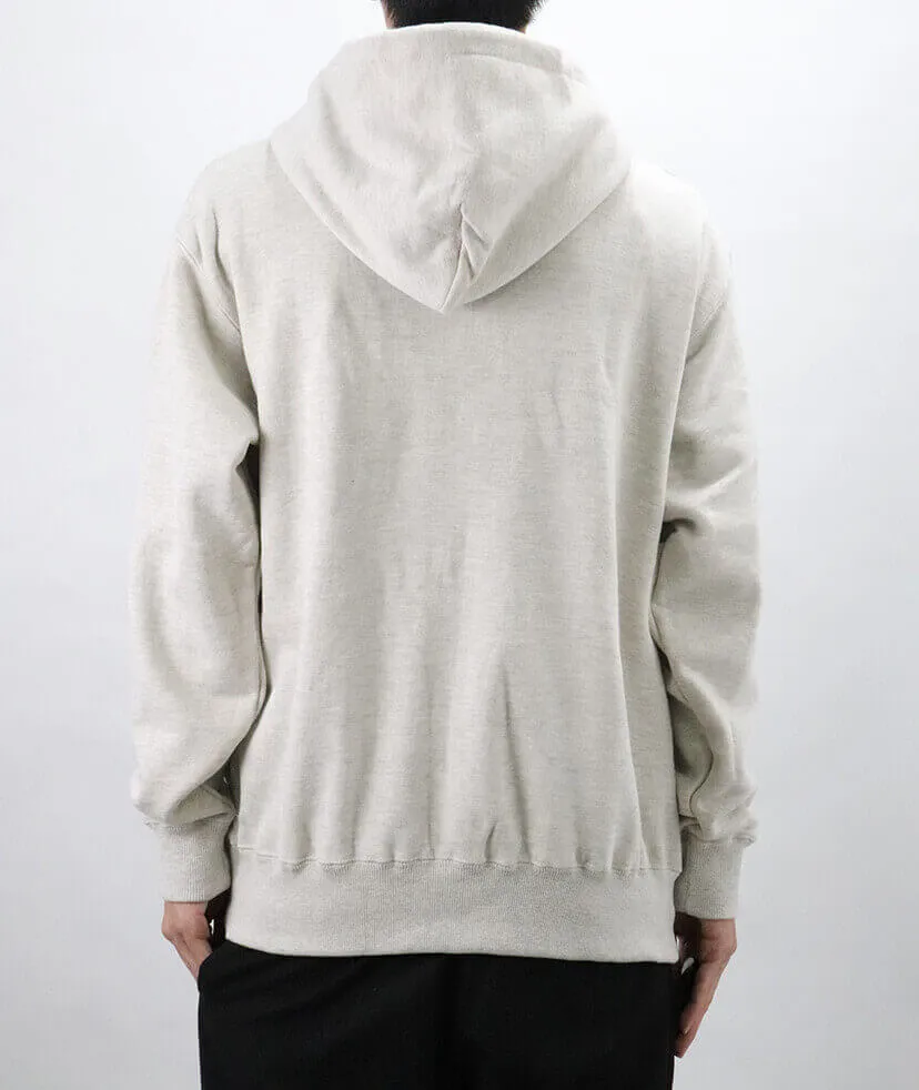 しっかりした厚みを感じられる10oz裏毛のジップパーカー。縫製・生地が丈夫なので、繰り返し洗濯しても型くずれしにくい、タフな一品です。シルエットはふっくらしていますので、オーバーサイズ気味に着こなすスタイルもおすすめです。