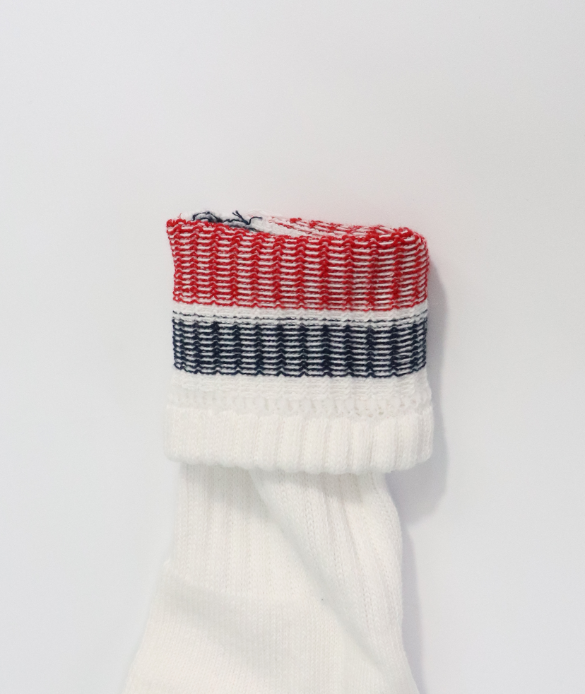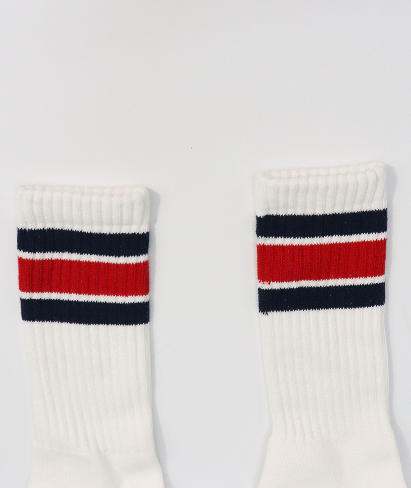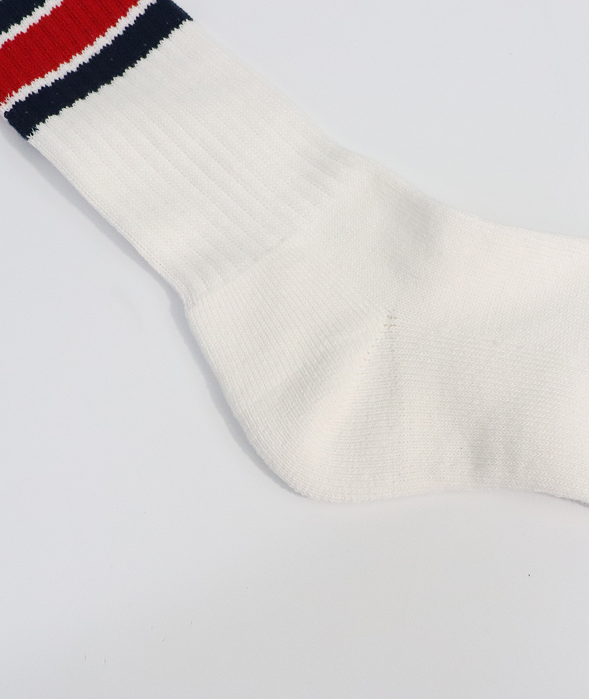 表糸USAコットン100%(ライン部分は除く)のクルーソックス。アメリカンスタイルには欠かせないアイテムです。
