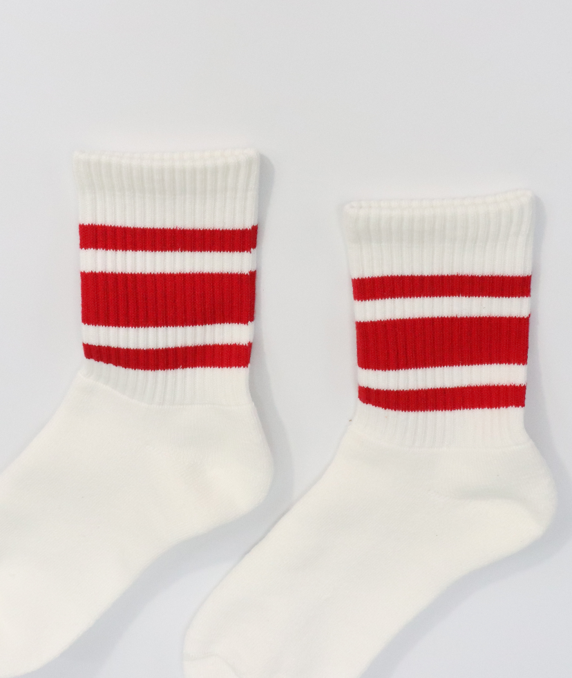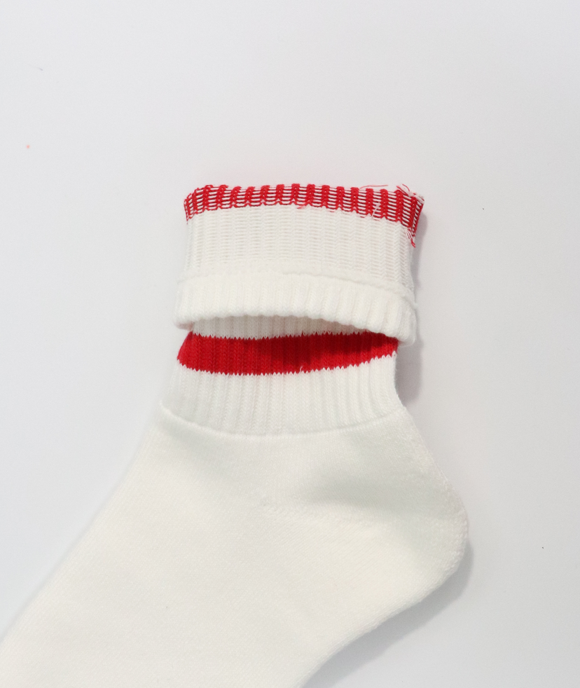 ベーシックなショート丈のラインソックス。一般的なラインソックスと比べ、糸の本数を増やすことで高いクッション性と耐久性を付与しました。