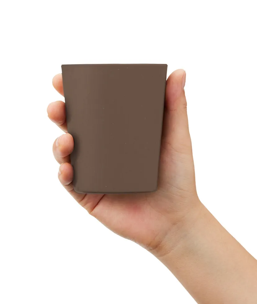 本来燃やして廃棄するコーヒーかすを有効活用した環境にやさしいマグカップです。陶器素材では無い為、軽くて割れにくく長く活用できる素材になっております。小ぶりで可愛らしい290mlと大容量の480mlの2型をご用意。290mlはドリップコーヒー一杯分にちょうど良い大きさなので、ブレイクタイムのお供にピッタリです。コーヒーを連想する、ブラウン、ベージュの落ち着いた色合いでクラシックな印象を活かしたデザインが活かせそうです。持ち手がついていない分、全面単色印刷をした時のデザインの幅が広がります。
