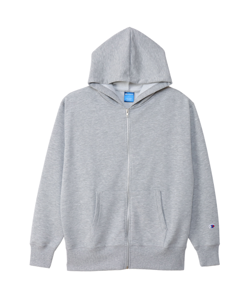 環境に配慮されたリサイクルポリエステル100%の素材で、従来のコットン100%素材より形状安定性に優れ、吸汗速乾機能が付いた生地を使用したジップフーデッドスウェットシャツです。 左袖にCロゴワッペンを付けています。