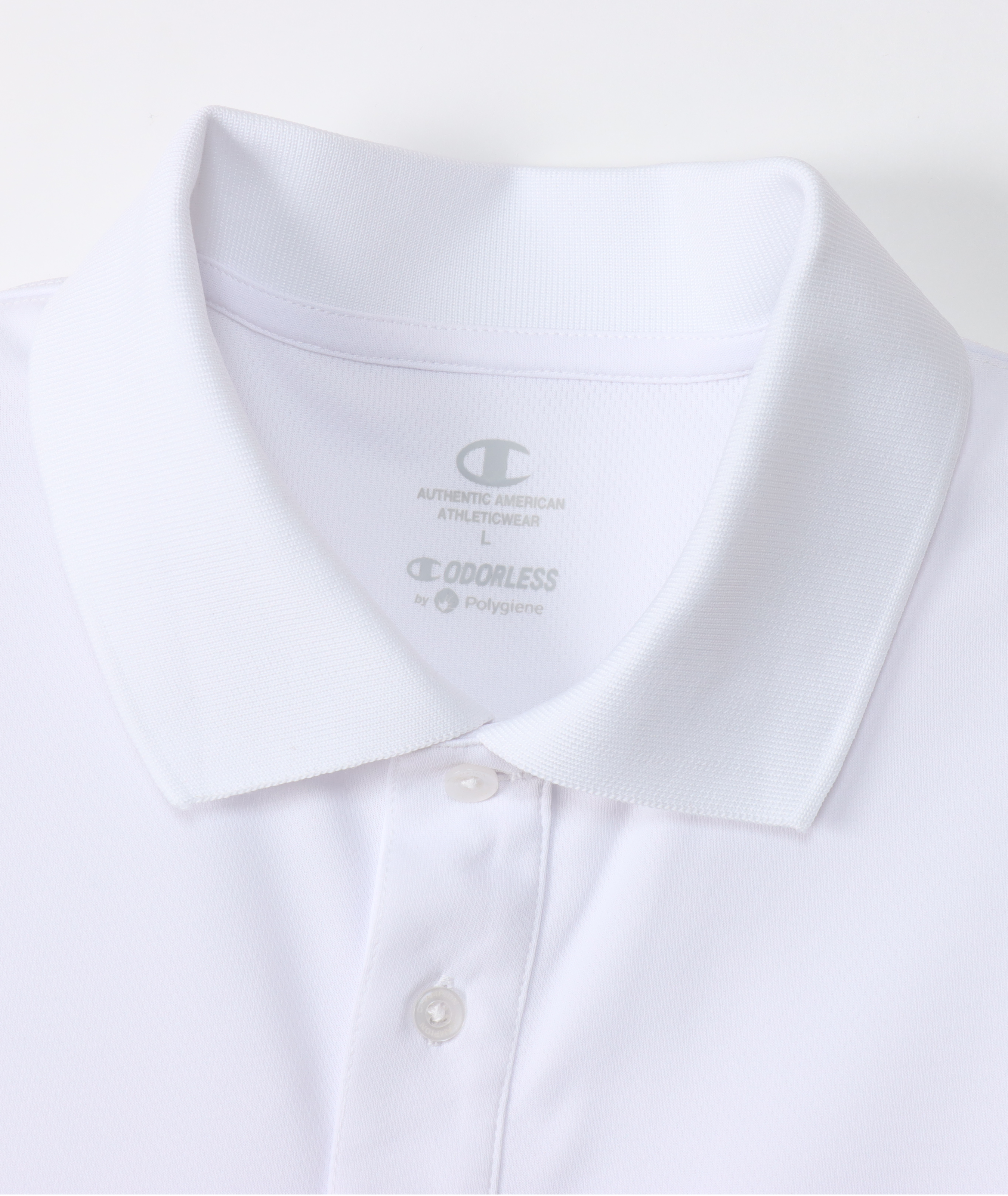 環境に配慮されたリサイクルポリエステル100%の吸汗速乾機能を備えた素材に、汗によるニオイの発生をアクティブに抑制し続ける抗菌・防臭機能「C ODORLESS® by Polygiene」加工を行った生地を使用したポロシャツです。左袖にCロゴワッペンを付けています。