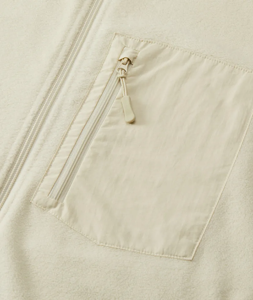 スリーブレスで肩や腕が動かしやすく、使い勝手抜群の万能フリースベスト。機動性の高さを担保しながらも、胸もとや背中をカバーし、体を芯からあたためるアイテムです。シャツやスウェットなどとのレイヤリングがしやすい厚みと軽さなので、寒い時季のミドルレイヤーとしてももってこい。その日の気温で自由に重ね着とスタイリングを楽しむことができます。また、出し入れしやすいようにパイピング仕様で仕立てたサイドポケットや着脱しやすいフルジップ仕様などうれしいポイントが満載。快適さと便利さを兼ね備えた、アウターとしてもインナーとしても重宝される、ロングシーズン大活躍の一着です。