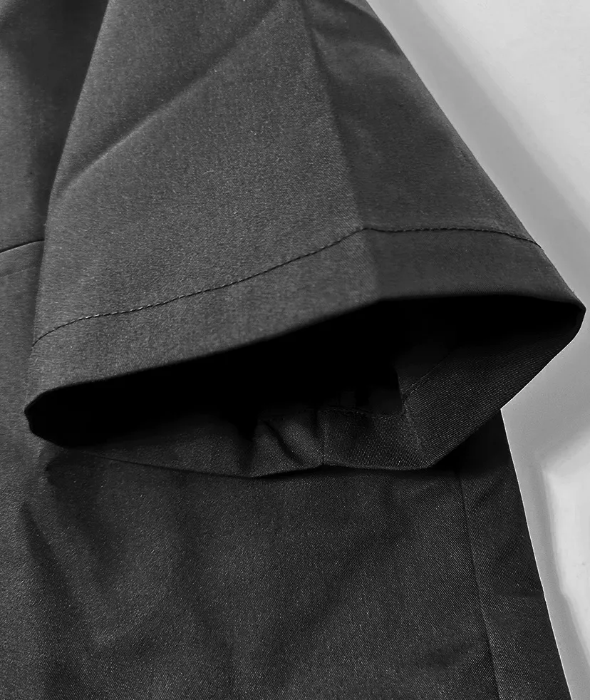 機能:ストレッチ、制菌 素材:ストレッチギャバジン 混率:複合繊維(ポリエテル)42%、ポリエステル38%、綿20% 仕様:かぶりタイプ(肩口スナップあき)、左胸ポケット、両脇ポケット(右のみ中ポケット付)、両脇スリット