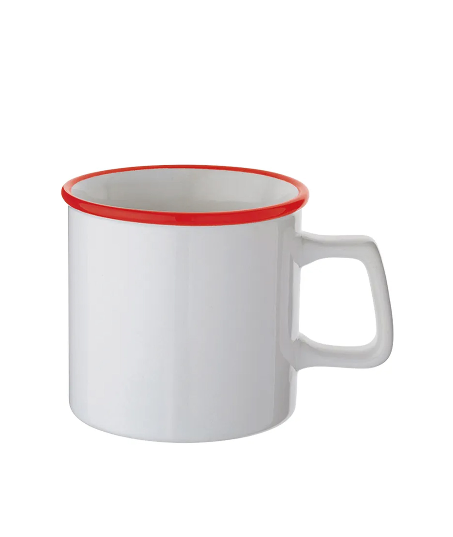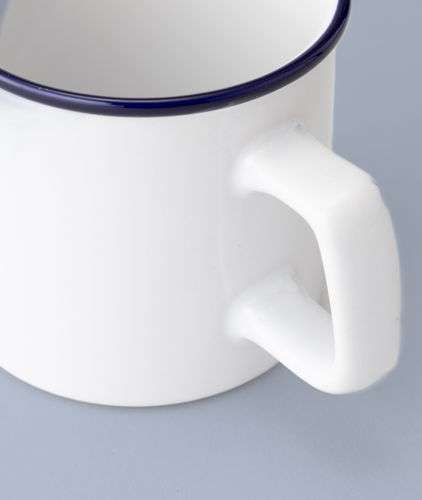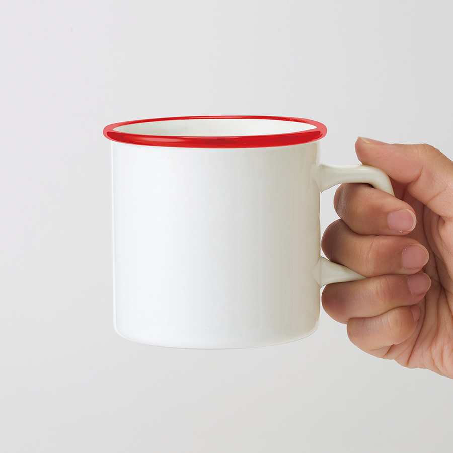 【1個からOK】ホーロー製ような口元がふっくらとしている陶器マグカップ!優しげなデザインにカラー展開も豊富で、口元の差し色がポイントになる5色ご用意しております。色違いで揃えても愛らしいデザインです。