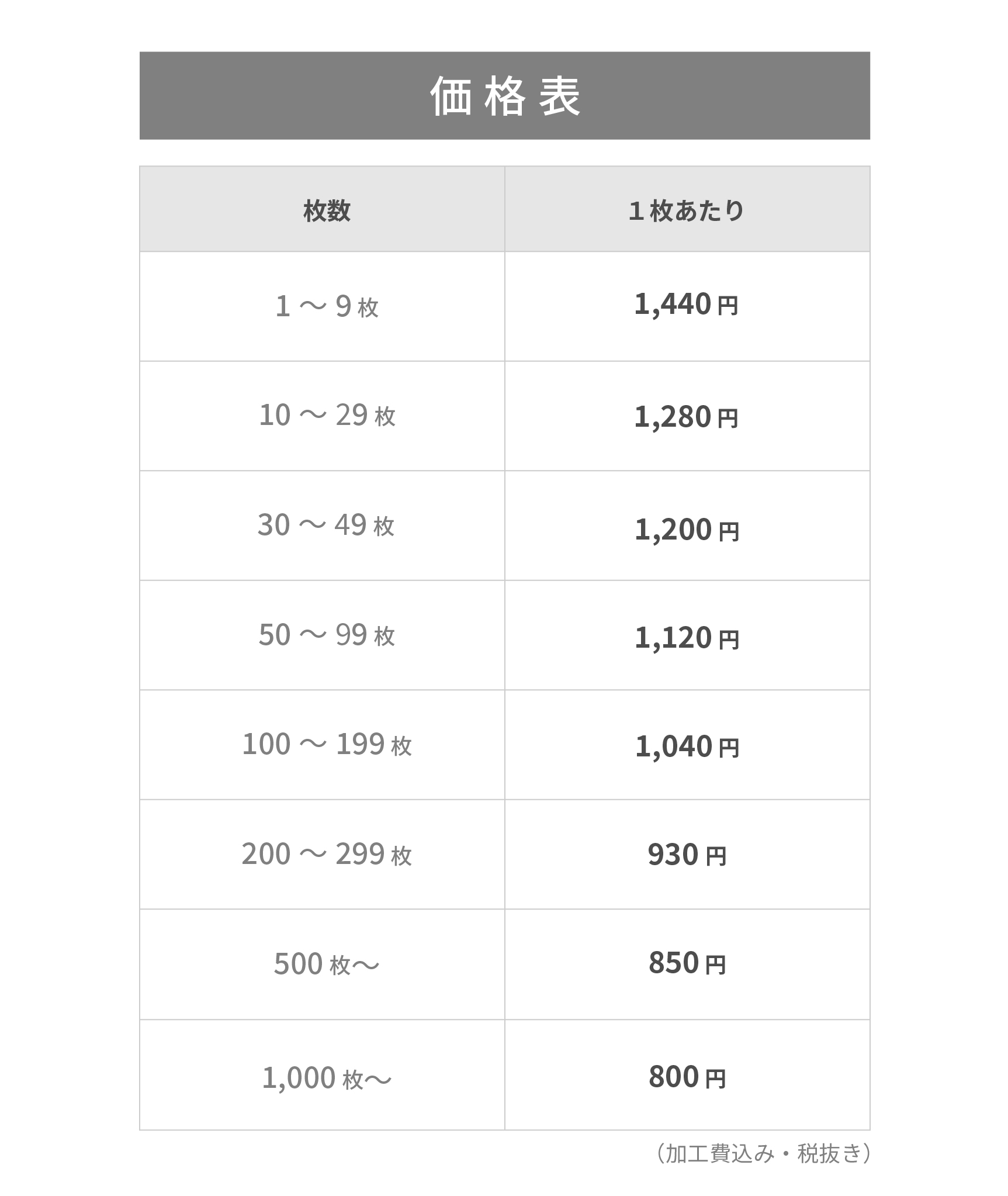 ご注文の枚数で割引率が変わります。デザインシュミレーター・データ入稿の場合は更に割引率が15%加算されますのでおトクです!